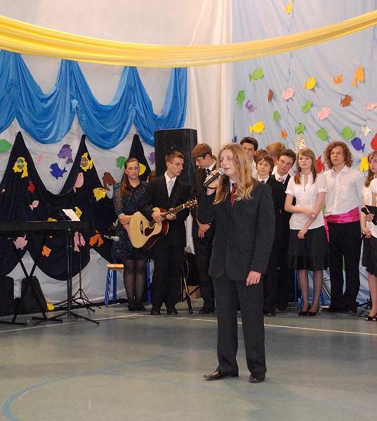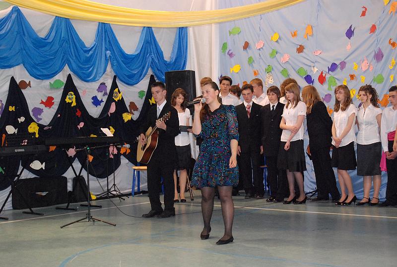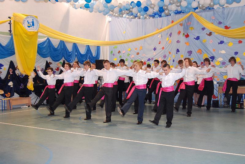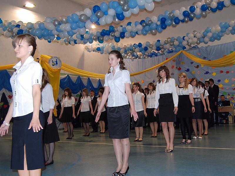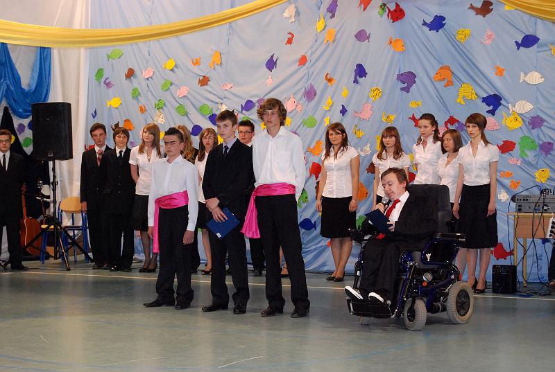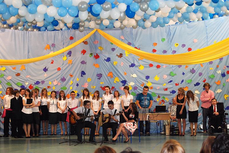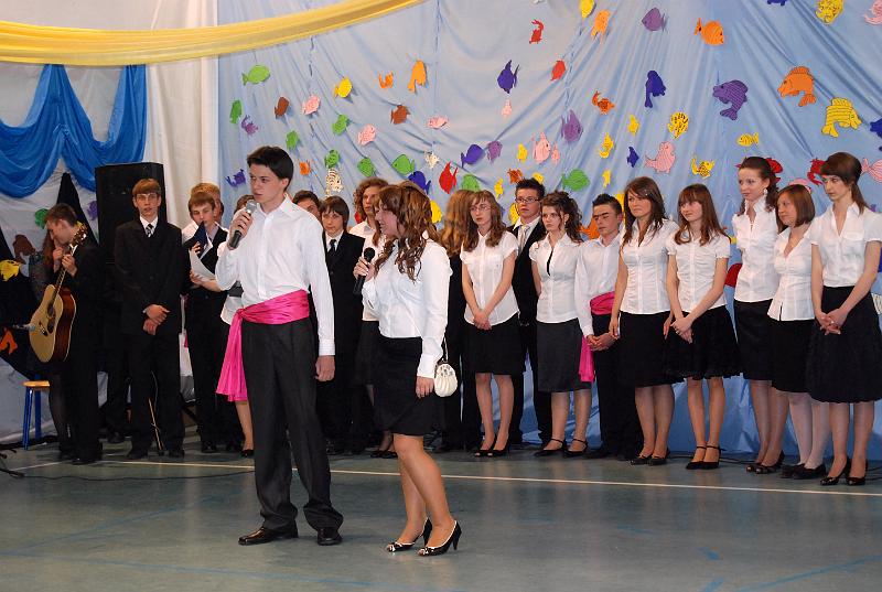 Na uroczystość przybyły wszystkie panie dyrektor, zaproszeni nauczyciele oraz rodzice. Bal rozpoczął się od poloneza w wykonaniu trzecioklasistów. Następnie mogliśmy obejrzeć krótki montaż słowno – muzyczny, który był formą podziękowania uczniów za trud i pracę nauczycieli oraz rodziców. Z wielką przyjemnością wysłuchaliśmy piosenek w wykonaniu Aleksandry Chraboł, Justyny Szewczyk, Aleksandry Wiśniewskiej czy Eryka Najduchowskiego. Swój talent muzyczny zaprezentowali również Mikołaj Marcinkiewicz, Filip Siudziński i Mikołaj Walczak. Jednak największym hitem tej części balu był Grek Zorba – taniec w wykonaniu grupy chłopców. Występy taneczno – muzyczne przeplatały się z dowcipnymi wierszami podsumowującymi trzyletni okres nauki.