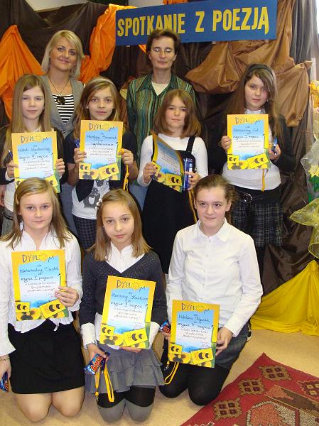 W XXVII Małym Konkursie Recytatorskim wzięli udział: Antoni Wojcieszek (kl. 1b), Aleksandra Kijak (kl. 3b), Aleksandra Dudek (kl. 5a), Wiktoria Ryciak (kl. 5c), Aleksandra Wojcieszak (kl. 2gD) i Aleksandra Świtka (kl. 2gD). Piękną recytacją zachwyciły Aleksandra Kijak (otrzymała wyróżnienie) oraz Aleksandra Świtka, która została zaproszona do eliminacji miejskich odbywających się 22 i 23 kwietnia 2010 r.