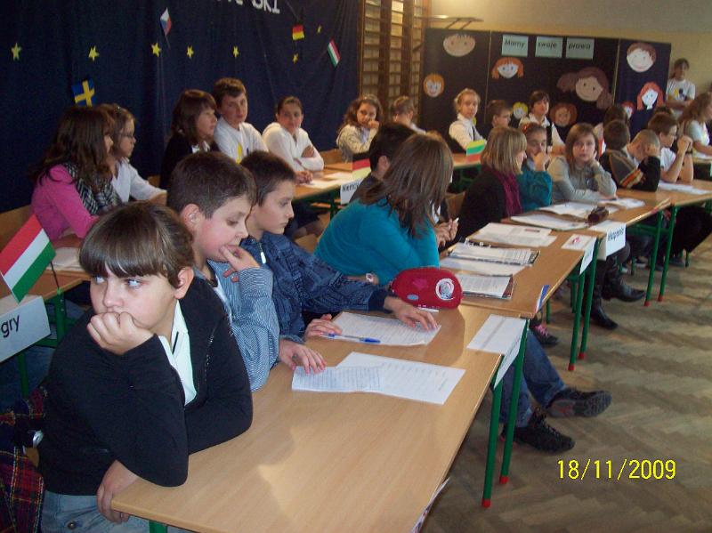 Uczniowie naszej szkoły reprezentowali Wielką Brytanię. Kasia z kl. IV, Bartek z kl. V i Kuba z kl. VI przybliżyli wszystkim uczestnikom debaty wiadomości na temat Rzecznika Praw Dziecka, obchodów Dnia Dziecka oraz organizacji, które w Wielkiej Brytanii działają na rzecz dzieci. Całe spotkanie upłynęło w miłej atmosferze pod hasłem „ Uczymy się bawiąc”. Nie zabrakło konkursów, w czasie których poszczególne drużyny mogły wykazać się wiedzą na temat państw należących do Unii Europejskiej.