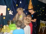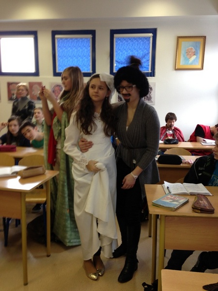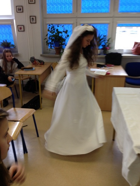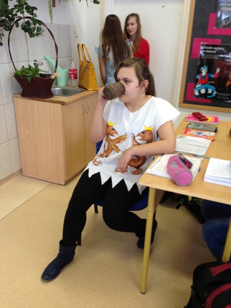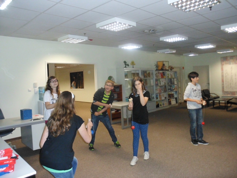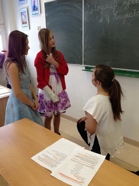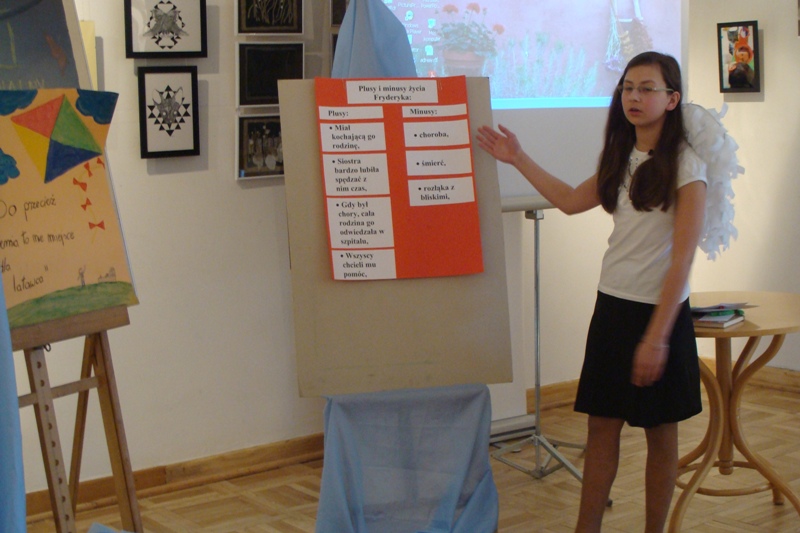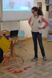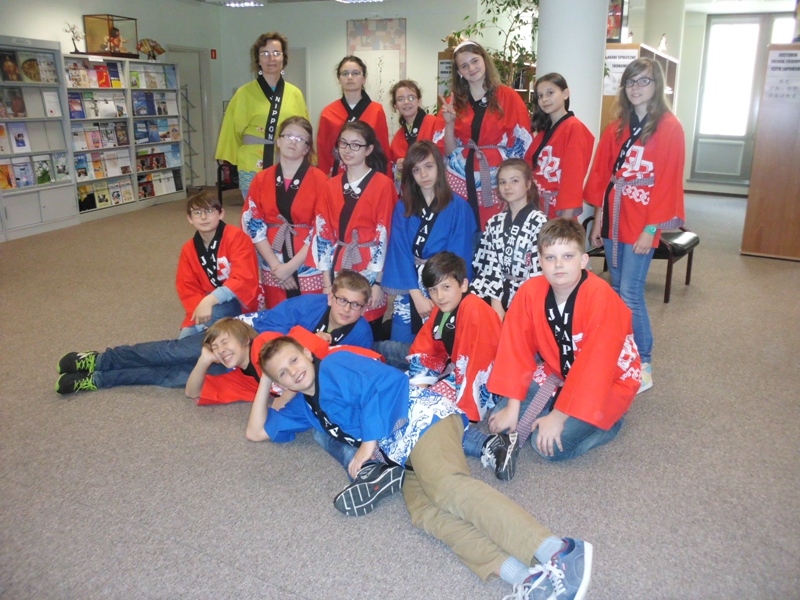 Największe wrażenie zrobił na nas pierwszy punkt programu. Dowiedzieliśmy się wielu ciekawych rzeczy o kulturze japońskiej. Mieliśmy nawet okazję wypróbować zabawki mieszkańców tego kraju, sprawdzić się w trudnej sztuce origami i przebrać w happy, stroje zakładane na uroczystości. Dodatkową atrakcją była możliwość sprawdzenia swoich umiejętności czytania w języku japońskim. Niestety, jak na razie, nikt z nas nie potrafił tego zrobić. To były bardzo ciekawe trzy godziny. Poznaliśmy głęboko zakorzenioną i rozwijaną przez wiele lat tradycję oraz kulturę mieszkańców kraju Kwitnącej Wiśni.