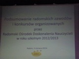 W poniedziałek 3 czerwca 2013 r. w Resursie w Radomiu odbyło się uroczyste podsumowanie konkursów regionalnych organizowanych przez Radomski Ośrodek Doskonalenia Nauczycieli.