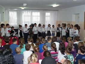 Aby podkreślić cel akademii i uczcić poległych w walce o swoją ojczyznę, uczennice klas szóstych – Łucja Szczepanik i Katarzyna Nowak - oraz absolwentka naszego gimnazjum, Karolina Zawierucha, zaśpiewały patriotyczne piosenki, „Biały Krzyż” i „O mój rozmarynie”.