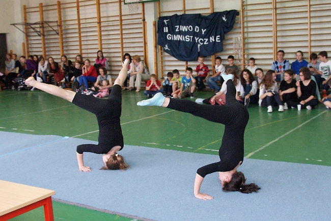 Zawody gimnastyczne zostały zorganizowane w naszej szkole po raz trzeci. Publiczność, którą tworzyli rodzice oraz uczniowie wspierający swoje koleżanki, była pod wrażeniem umiejętności gimnastycznych zaprezentowanych przez zawodniczki. Miejmy nadzieję, że w przyszłym roku odbędzie się kolejna edycja tej imprezy.