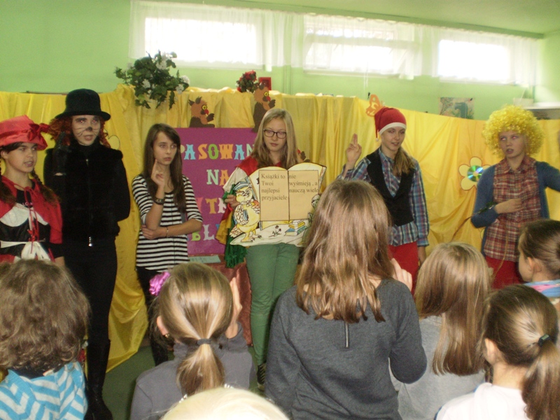 W dniu 29 października 2012r w ramach Międzynarodowego Święta Bibliotek Szkolnych odbyło się uroczyste przyjęcie pierwszoklasistów w poczet czytelników biblioteki szkolnej. Uczennice z klasy 6C wystąpiły dla klas pierwszych w przedstawieniu "Książka moim przyjacielem". Pierwszoklasiści otrzymali pamiątkowy dyplom i zakładki do książek.