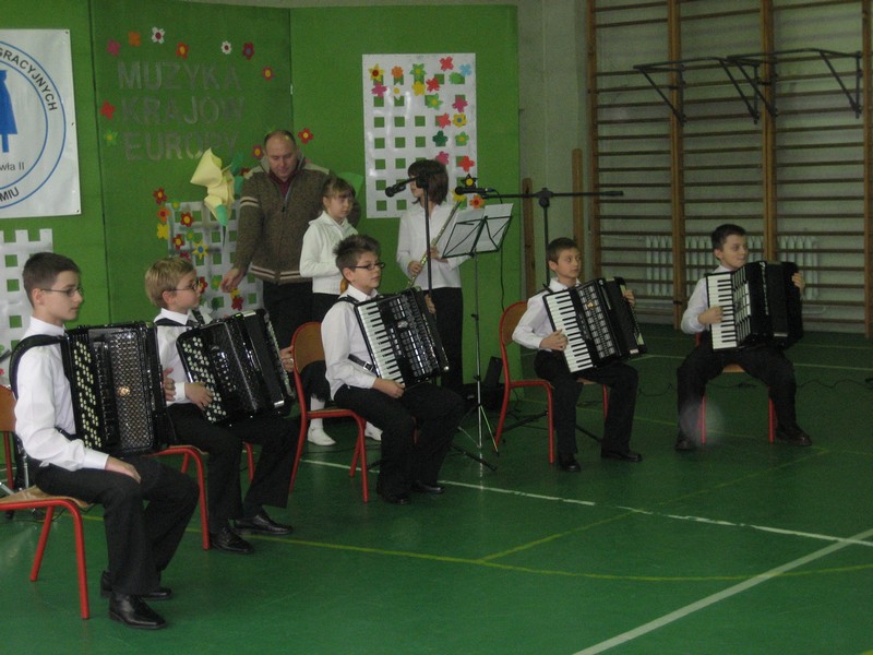 Atrakcją czwartku był koncert wykonany w naszej szkole przez zaproszonych, młodych artystów. Uczniowie Szkoły Muzycznej w Radomiu zaprezentowali muzykę różnych krajów. Wysłuchaliśmy m.in. walca, poloneza oraz wiele innych utworów. Owacjom nie było końca.
