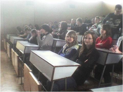 Razem ze studentami pierwszego roku wysłuchaliśmy wykładu i obejrzeliśmy prezentację multimedialną o polskich elektrowniach przygotowaną przez dr inż. Zbigniewa Olczykowskiego.